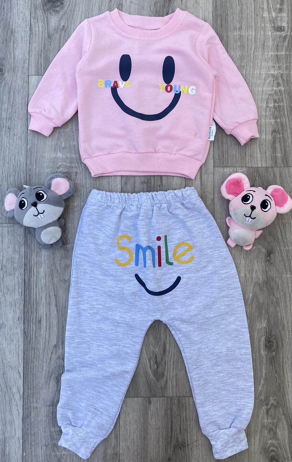 Костюм Mimiico "Smile" розовый, девочка 9-12-18-24 месяцев оптом уп. - 4 шт.