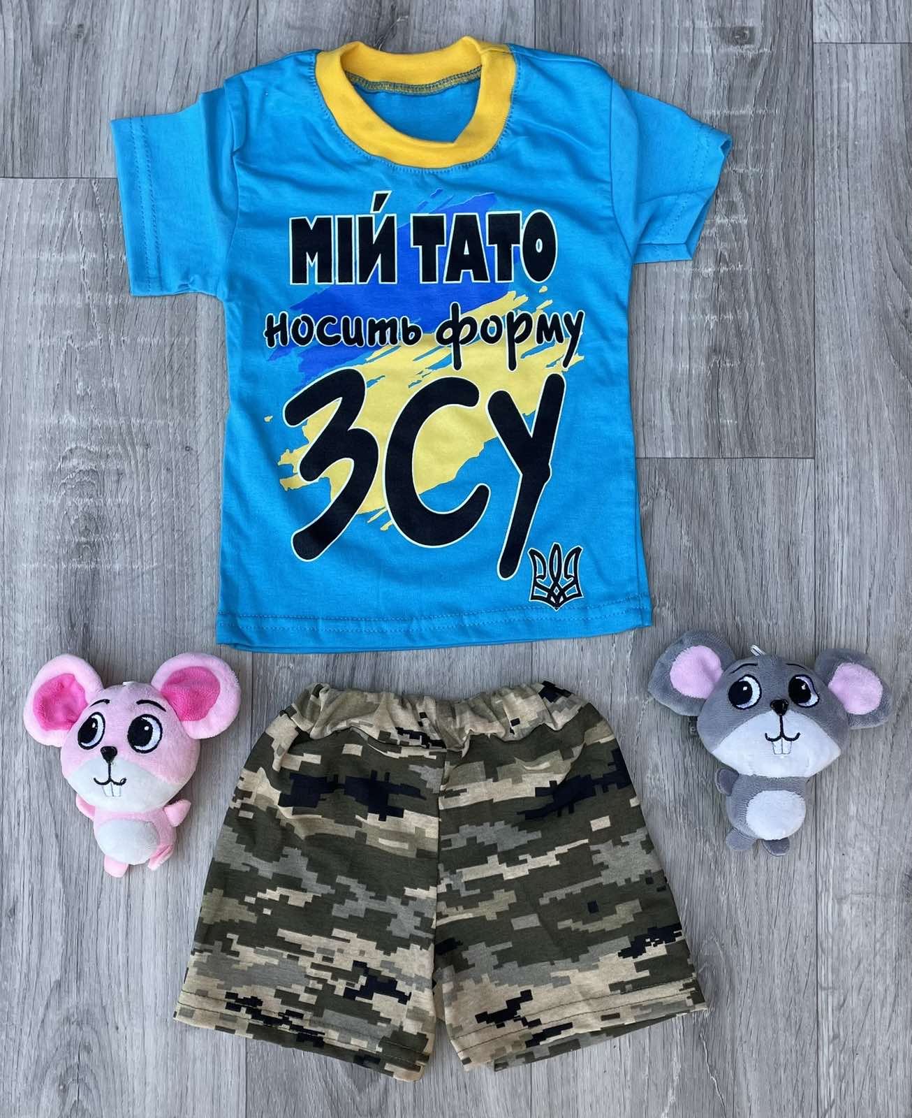 Костюм "Мій тата носить форму ЗСУ" голубой, мальчик 1-2-3-4-5 лет оптом уп. - 5 шт.