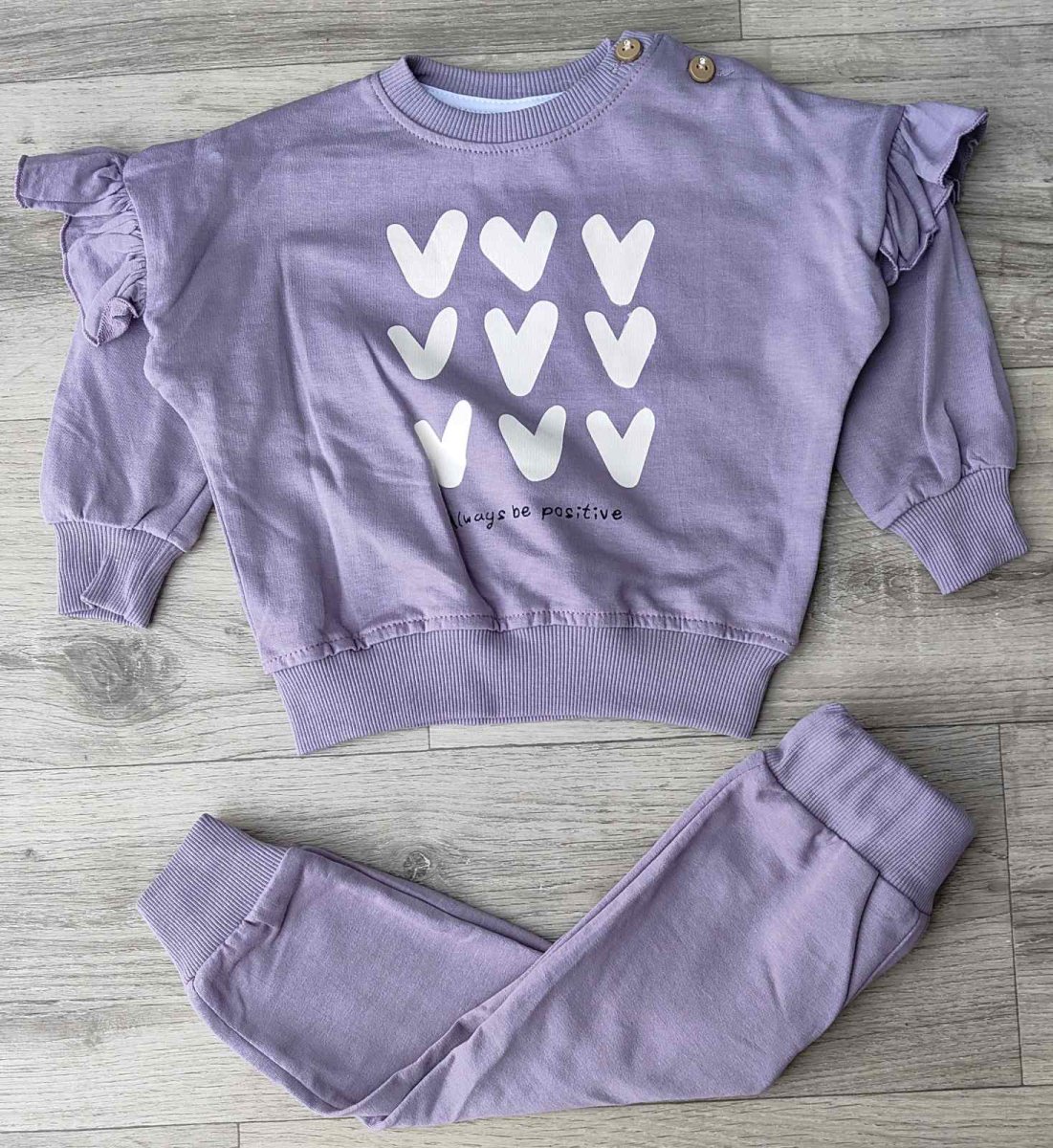 Костюм My Bella "Always be positive" фиолетовый, девочка 6-9-12-18 месяцев оптом уп. - 4 шт.