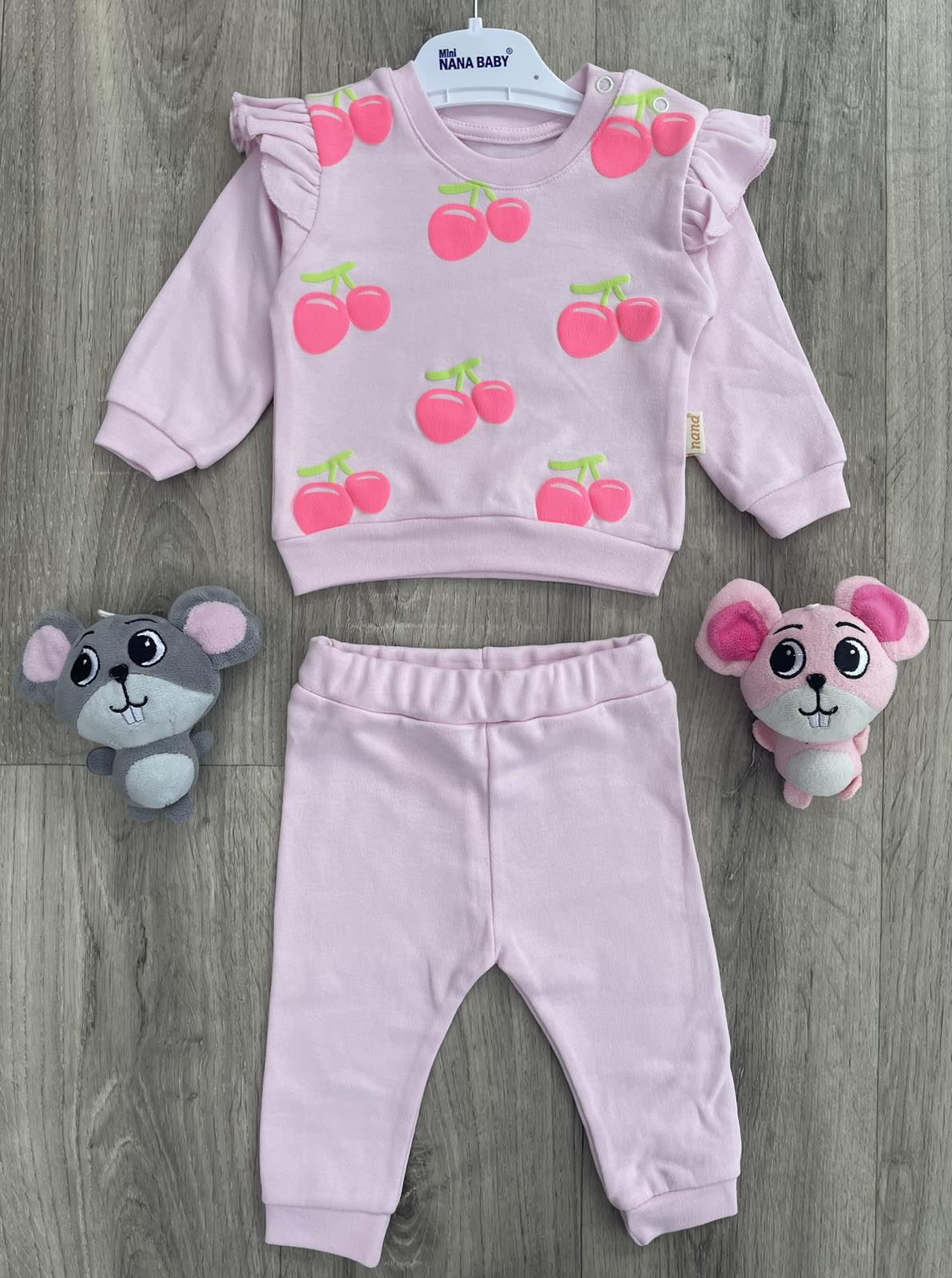 Костюм Nana Baby "Вишни" пудра, девочка 3-6-9 месяцев оптом уп. - 3 шт.