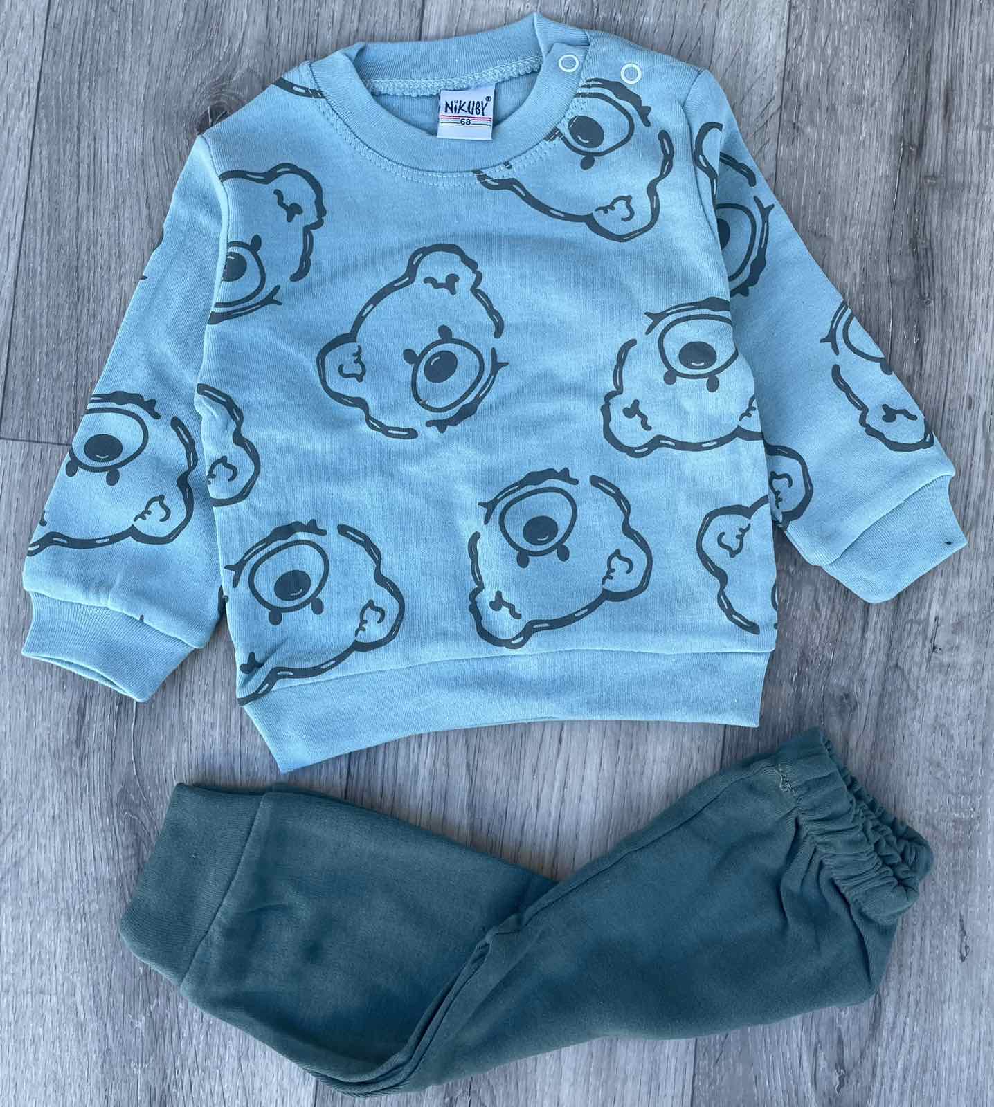 Костюм Nikuby «Мишки» голубой, мальчик 6-9-12 месяцев оптом уп. - 3 шт.
