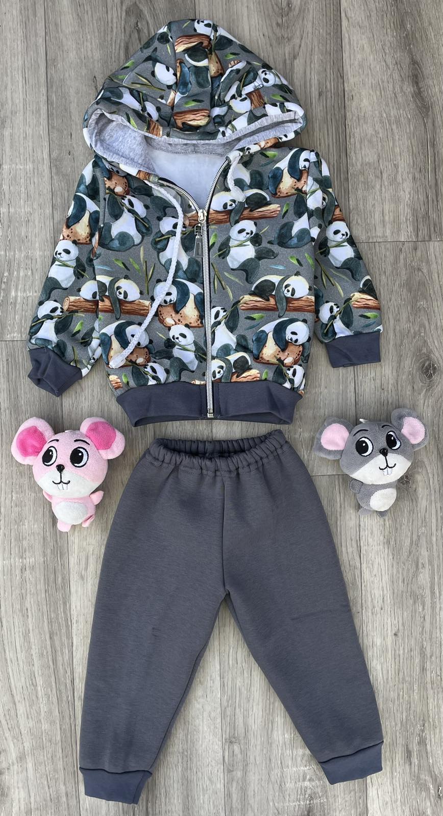 Костюм "Панда" серый , мальчик 6-9-12 месяцев оптом уп. - 3 шт.