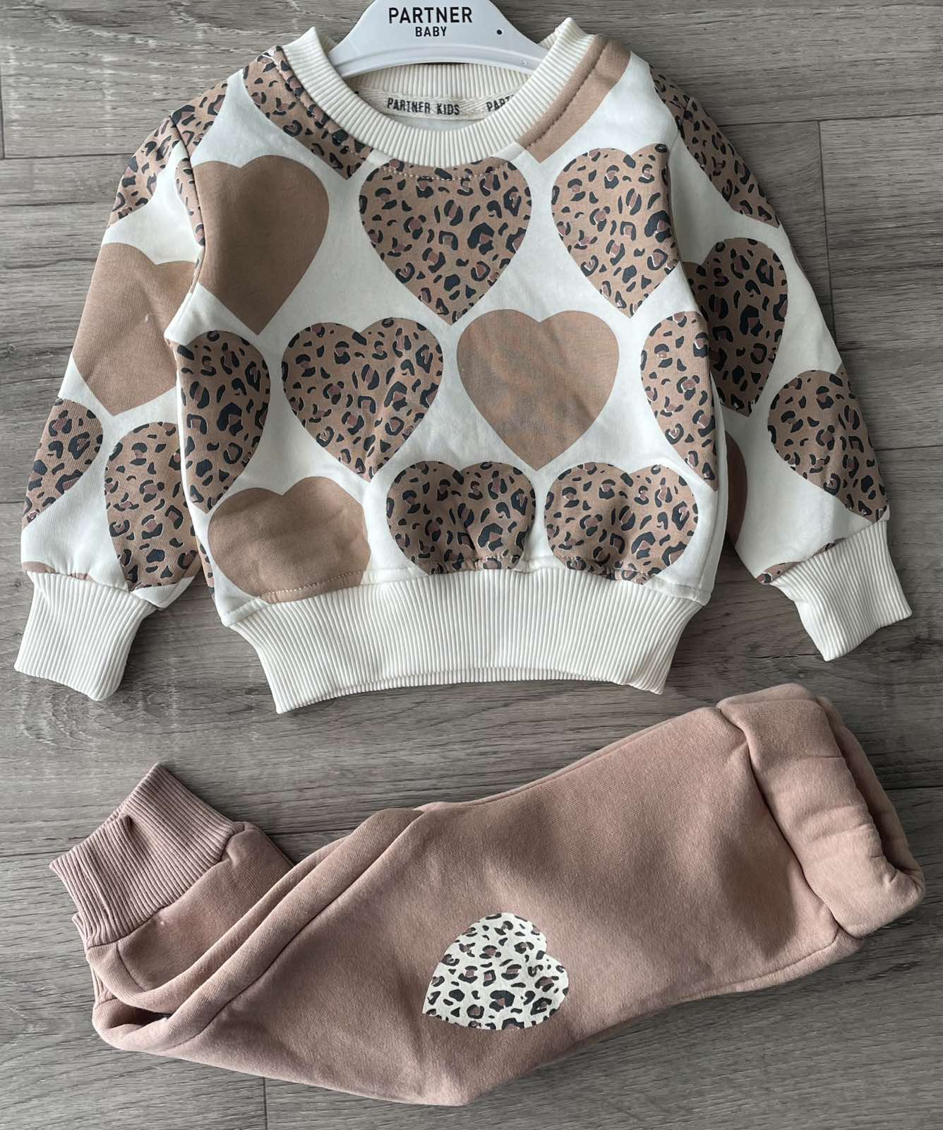 Костюм Partner "Сердечки" бежевый, девочка 9-12-18-24 месяцев оптом уп. - 4 шт.