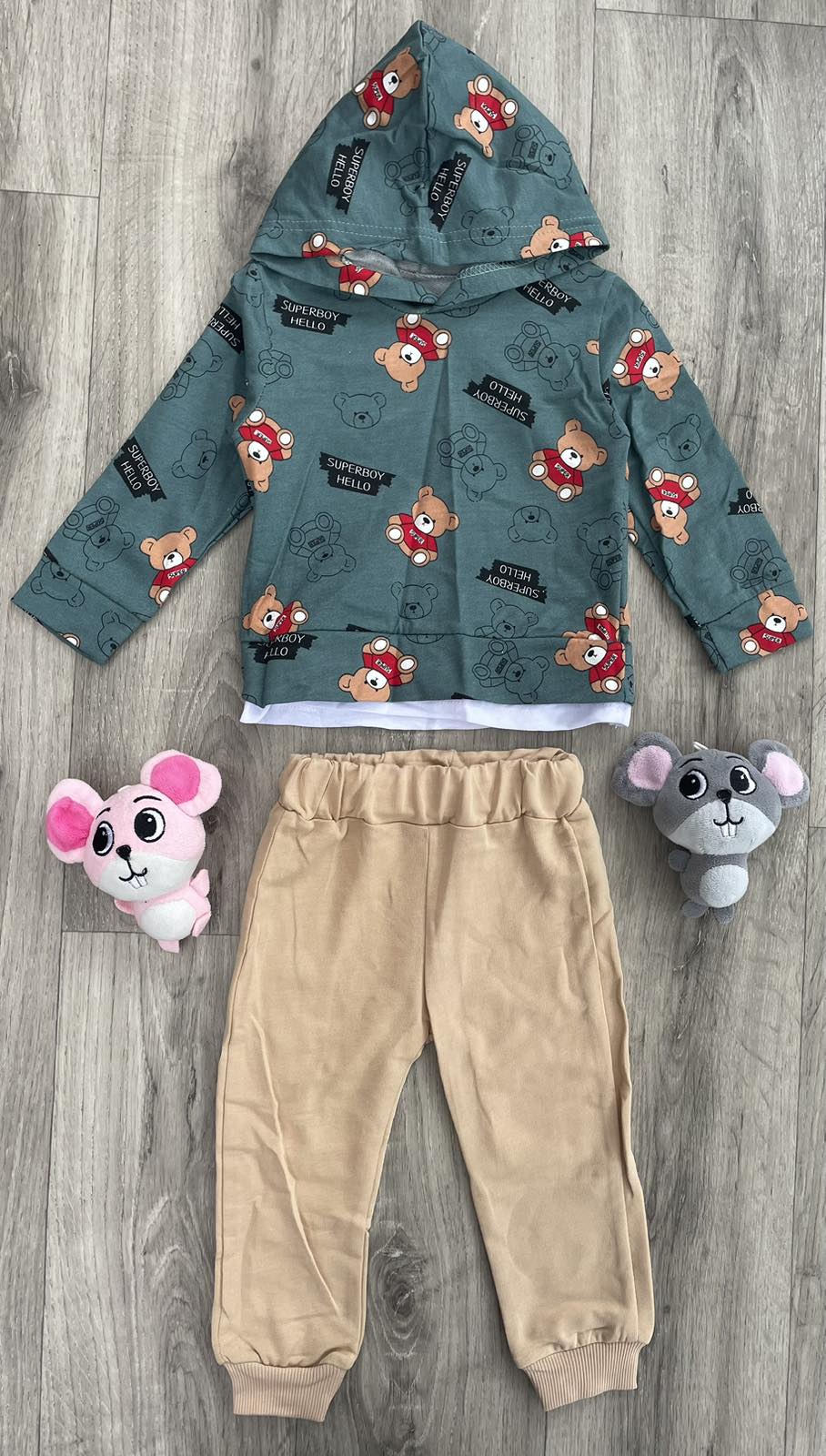Костюм Partner "Superboy" зелёный, мальчик 9-12-18-24 месяцев оптом уп. - 4 шт.