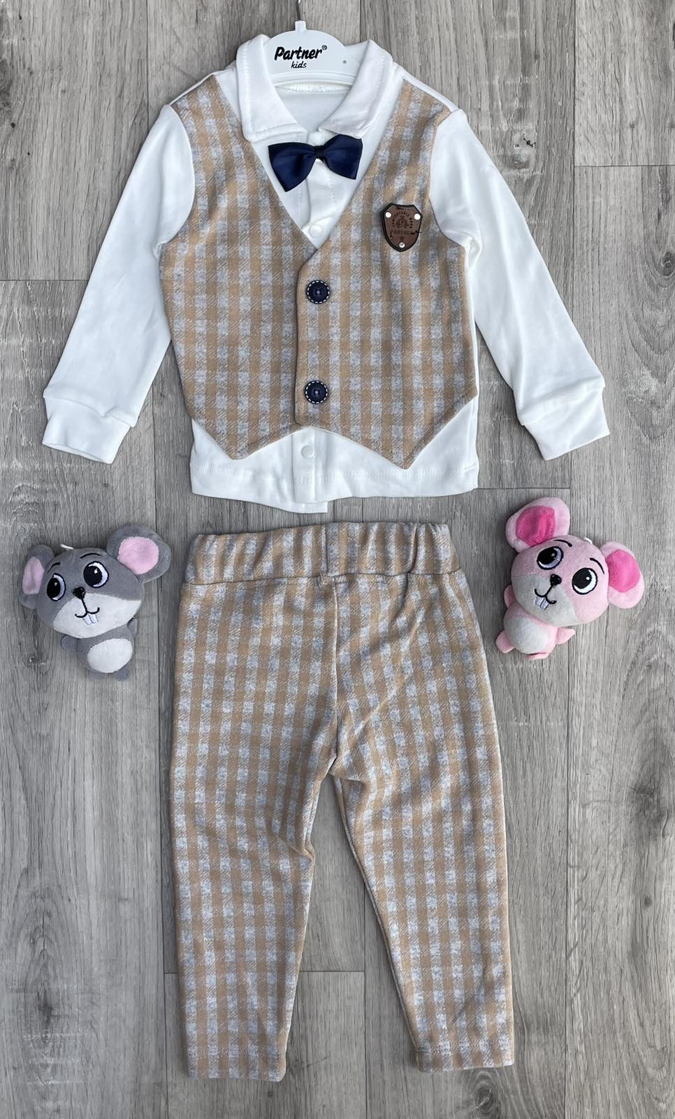 Костюм Partner "В клетку" бежевый, мальчик 9-12-18-24 месяцев оптом уп. - 4 шт.