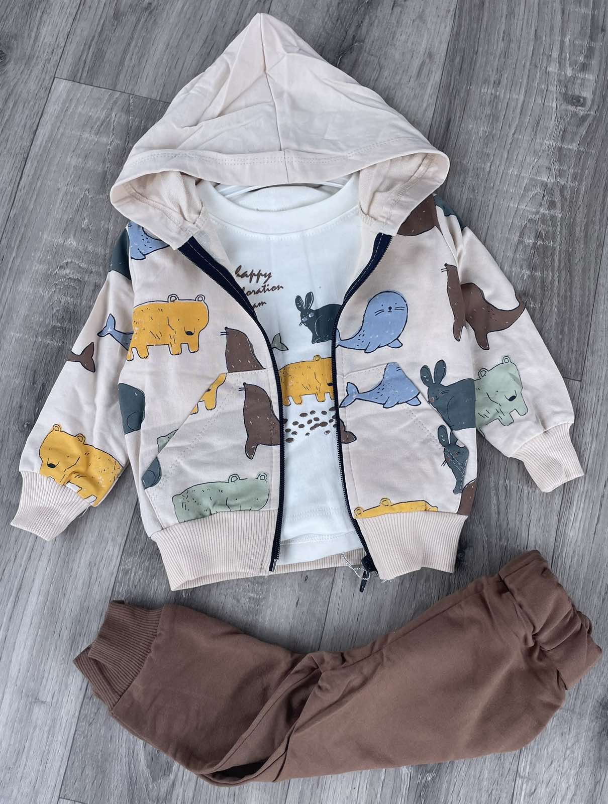 Костюм Partner «Животные» коричневый, мальчик 9-12-18-24 месяцев оптом уп. - 4 шт.