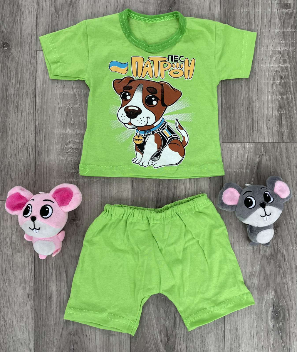 Костюм "Пес Патрон" салатовый, мальчик 6-9-12-18 месяцев оптом уп. - 4 шт.
