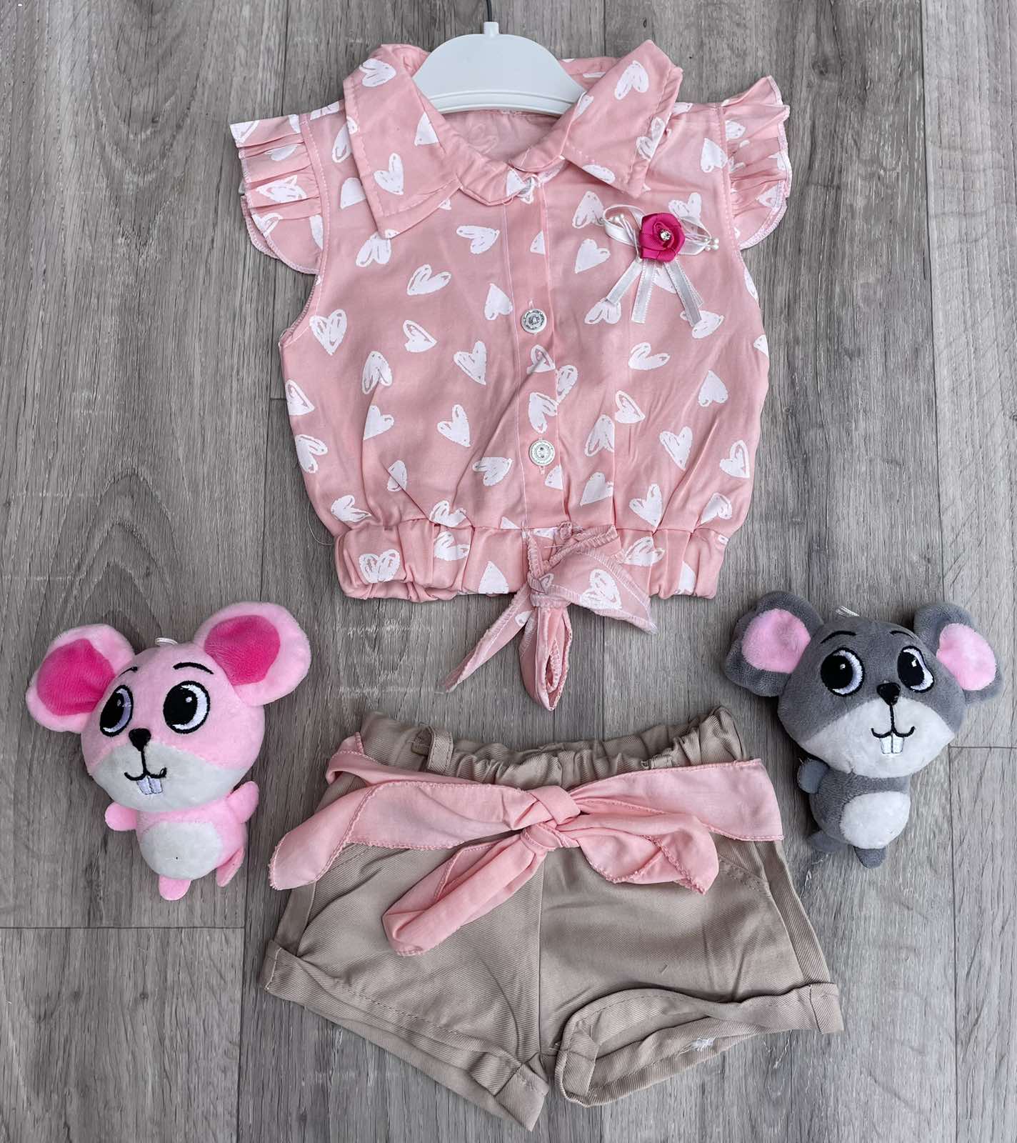Костюм Ronix "Сердца" персиковый с бежевым, девочка 6-12-18-24 месяца мес оптом уп. - 4 шт.
