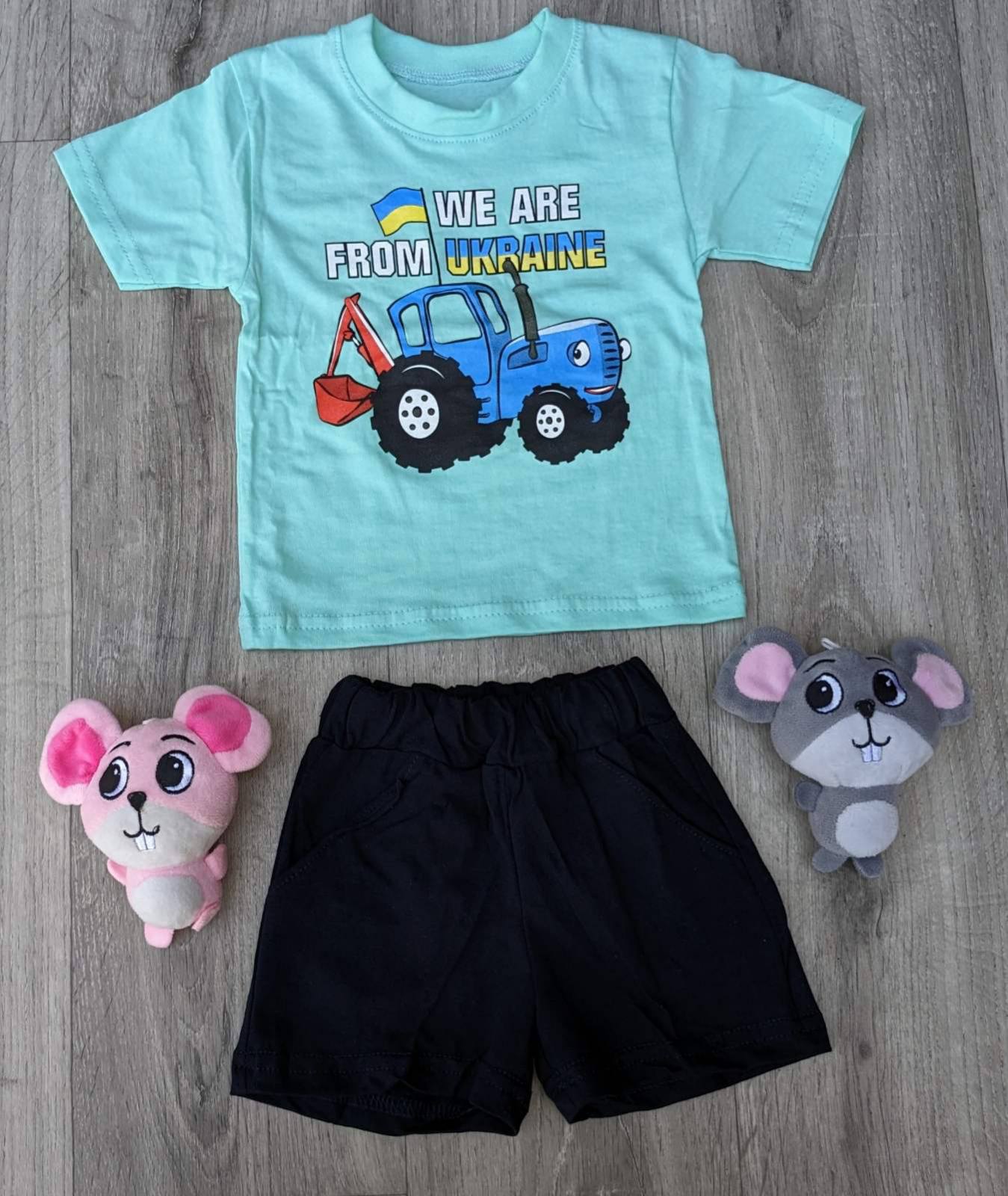 Костюм "We are from Ukraine" бирюзовый, мальчик 1-2-3 года оптом уп. - 3 шт.