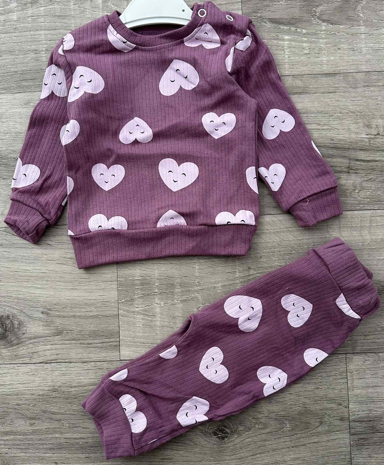 Костюм Woops «Сердечки» фиолетовый, девочка 6-9-12-18 месяцев оптом уп. - 4 шт.