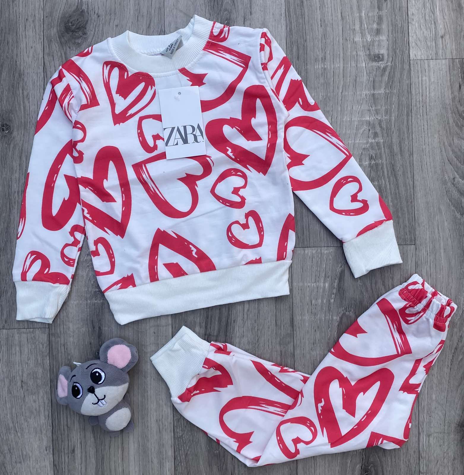 Костюм Zara "Сердца" белый, девочка 2-3-4-5-7 лет, фото
