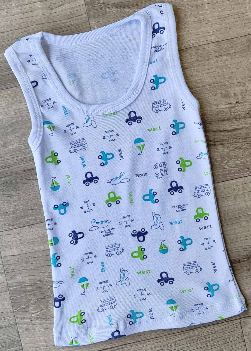 Майка "Car" белая, мальчик 1-2-3-4-5 лет оптом уп. - 10 шт.