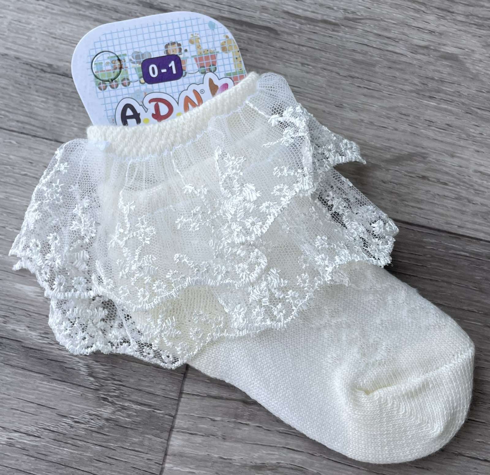 Носочки ADN «Кружево» молочный, девочка 0-12 месяцев, фото