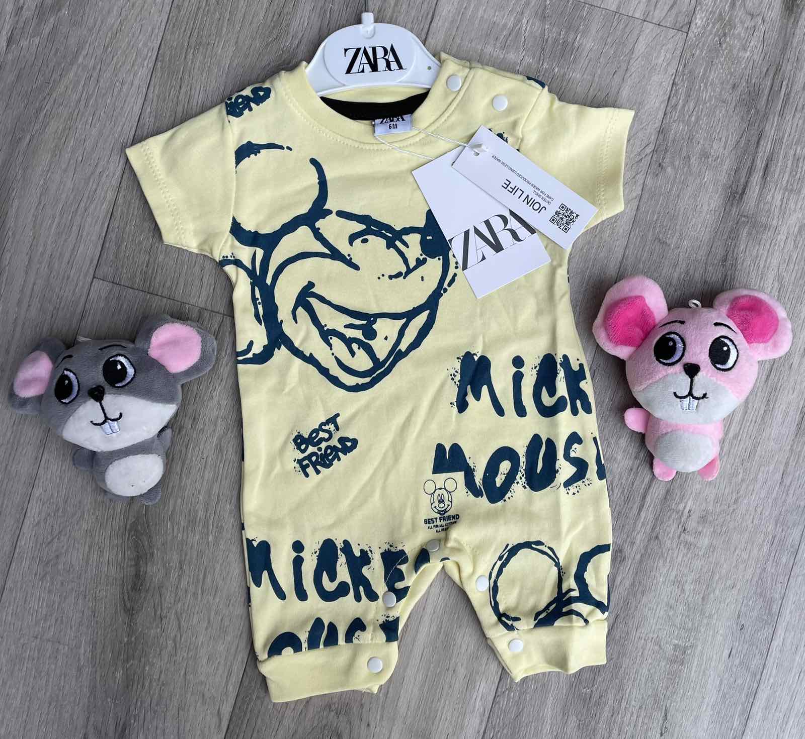 Песочник Zara "Mickey Mouse" лимонный, унисекс 6-9-12 месяцев оптом уп. - 3 шт.