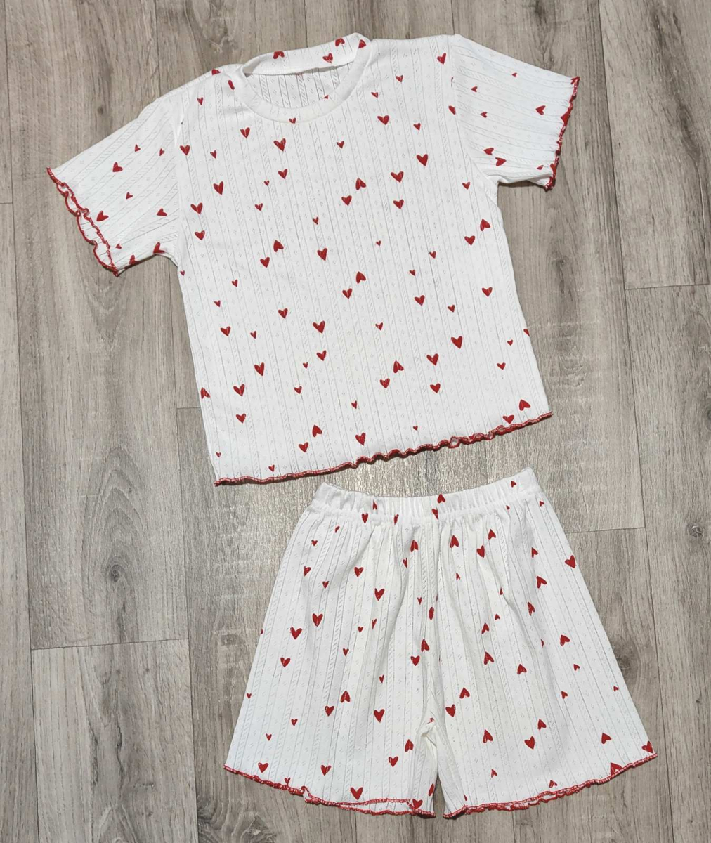 Пижама "Сердца" красный, девочка 10-11-12-13 лет оптом уп. - 4 шт.