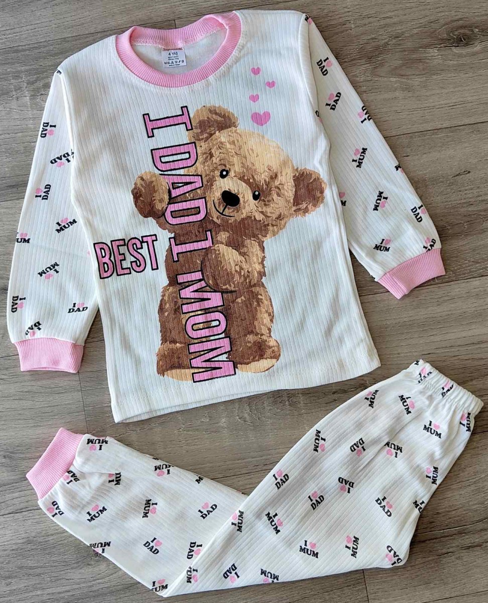 Пижама Supermini «I ❤️ Dad, I ❤️ Mom» розовый, девочка 4-5-6 лет оптом уп. - 3 шт.