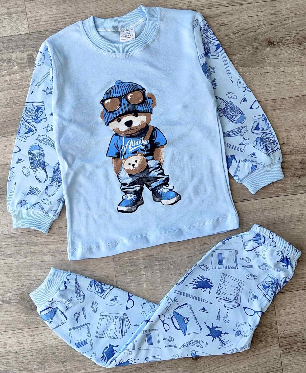 Пижама Supermini "Мишка" голубой, мальчик 4-5-6 лет оптом уп. - 3 шт.