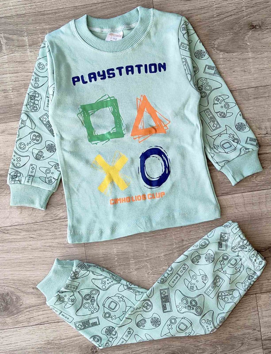 Пижама Supermini "Playstation" мятный, мальчик 1-2-3 года оптом уп. - 3 шт.
