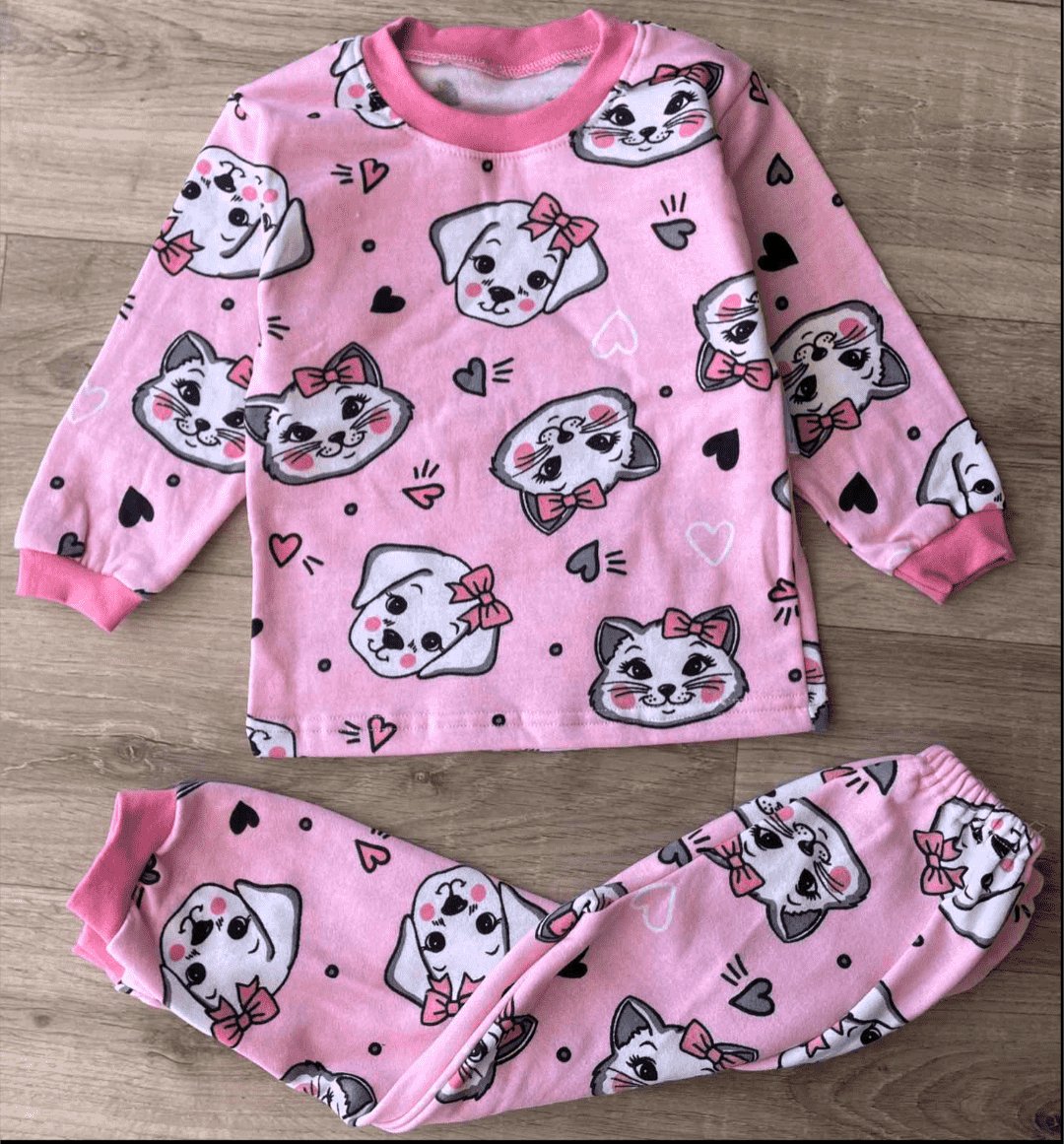 Пижама "Котенок и щенок" розовая, девочка 2-3-4-5-6 лет оптом уп. - 5 шт.