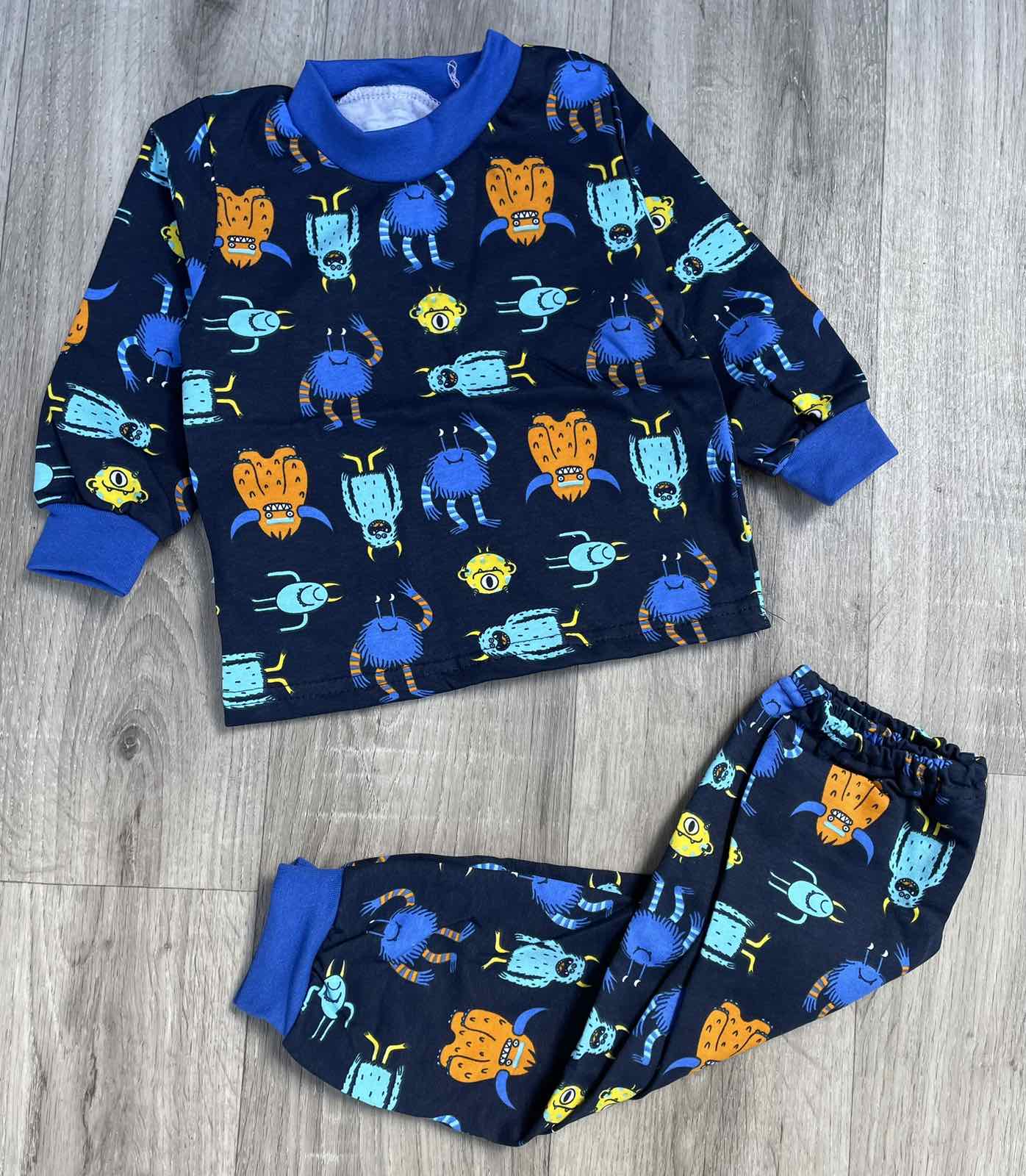 Пижама "Монстеры" синяя, мальчик 1-2-3-4-5 лет оптом уп. - 5 шт.