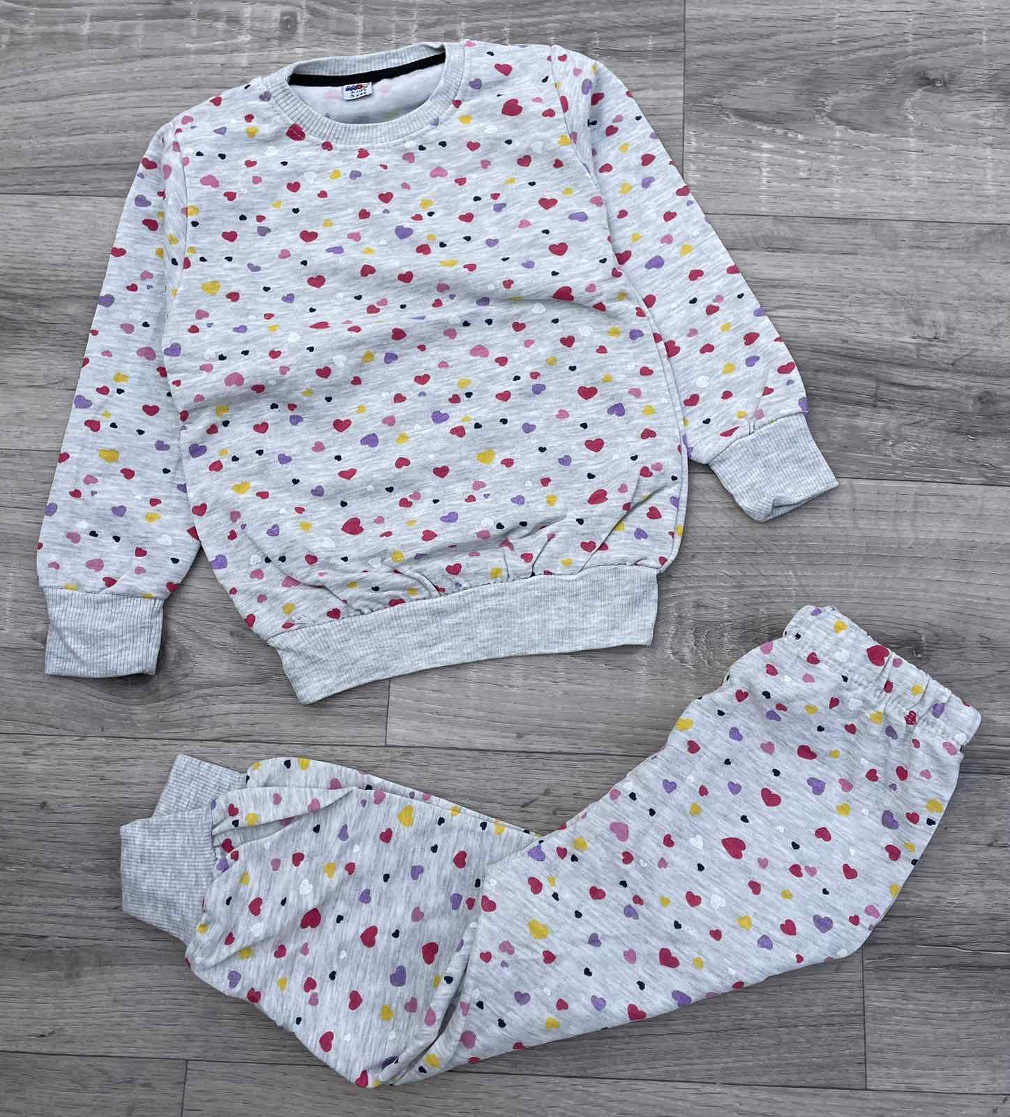 Пижама Moy «Сердечки» серый, девочка 3-4-5-6-7 лет оптом уп. - 5 шт.