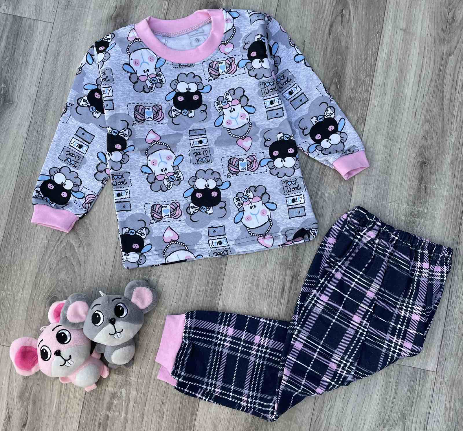 Пижама "Овечка" серая, девочка 2-3-4-5-6 лет оптом уп. - 5 шт.