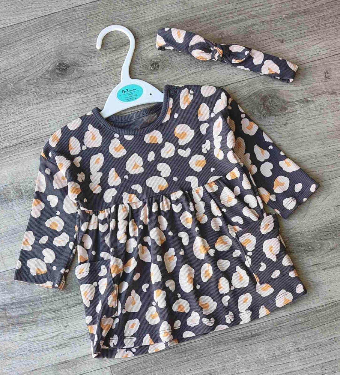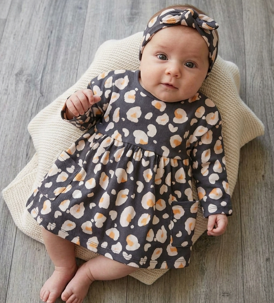 Платье «Лепестки» серый(графитовый), 3-6-9-12-18 месяцев оптом уп. - 5 шт.