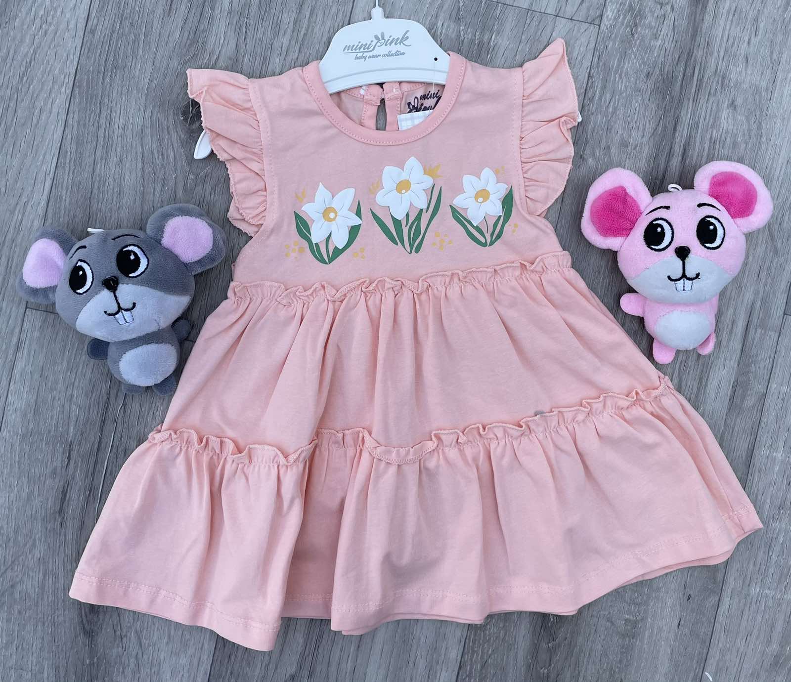 Платье Mini Pink "Цветочки" персиковое 9-12-18-24 месяцев оптом уп. - 4 шт.