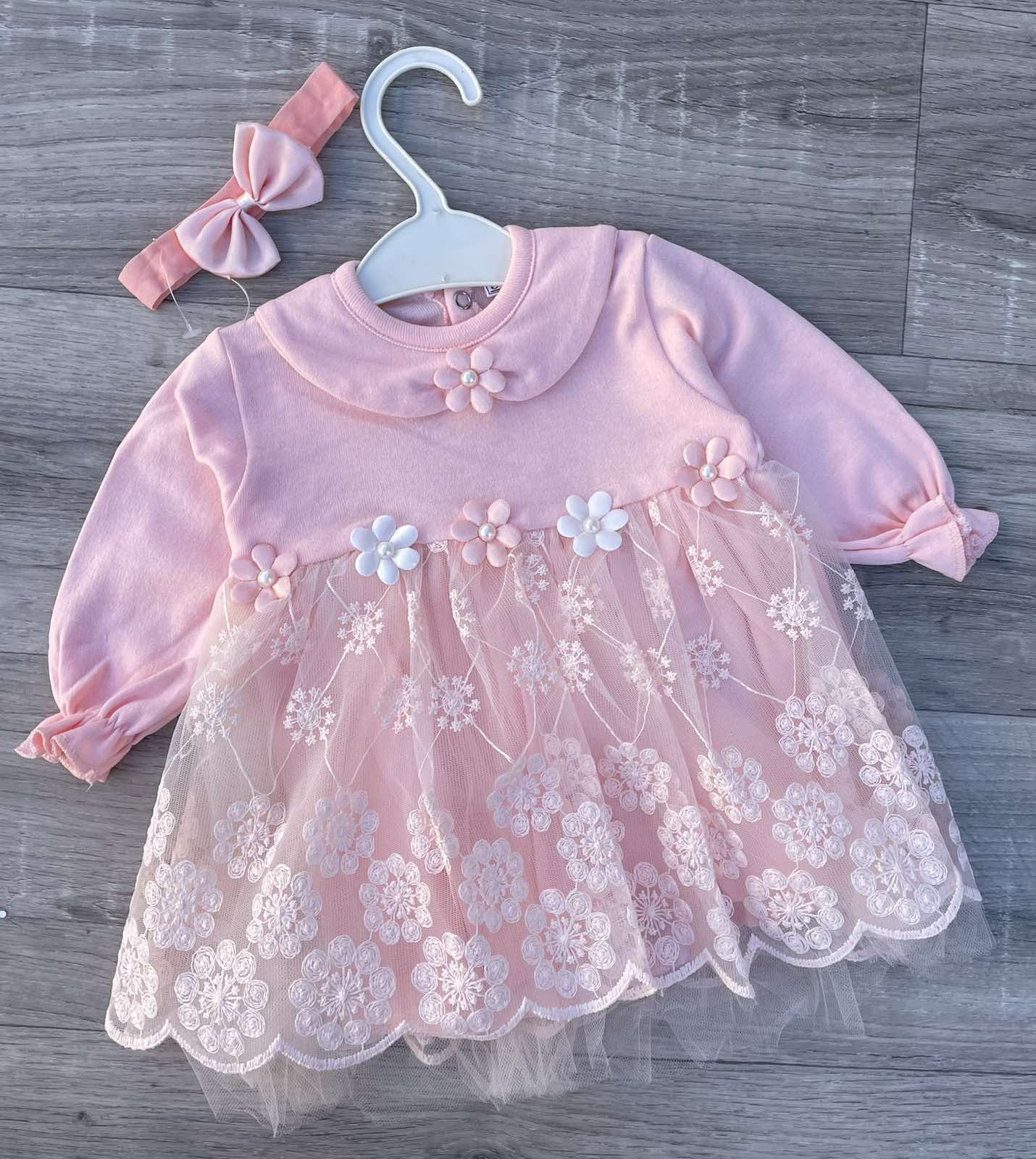 Платье Pon Pon «Цветочки» персиковый, 3-6-9 месяцев оптом уп. - 3 шт.