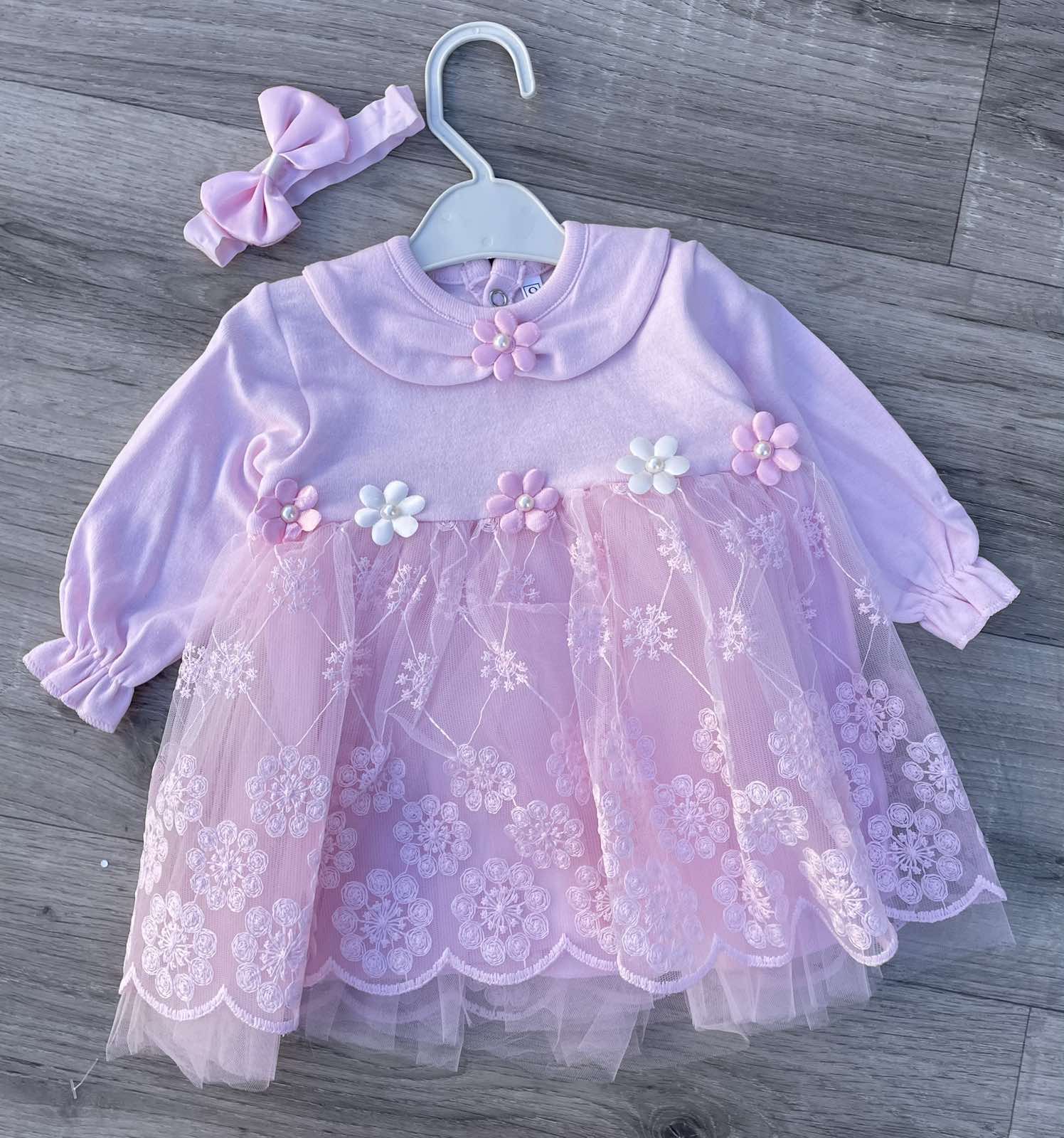 Платье Pon Pon «Цветочки» розовый, 3-6-9 месяцев оптом уп. - 3 шт.