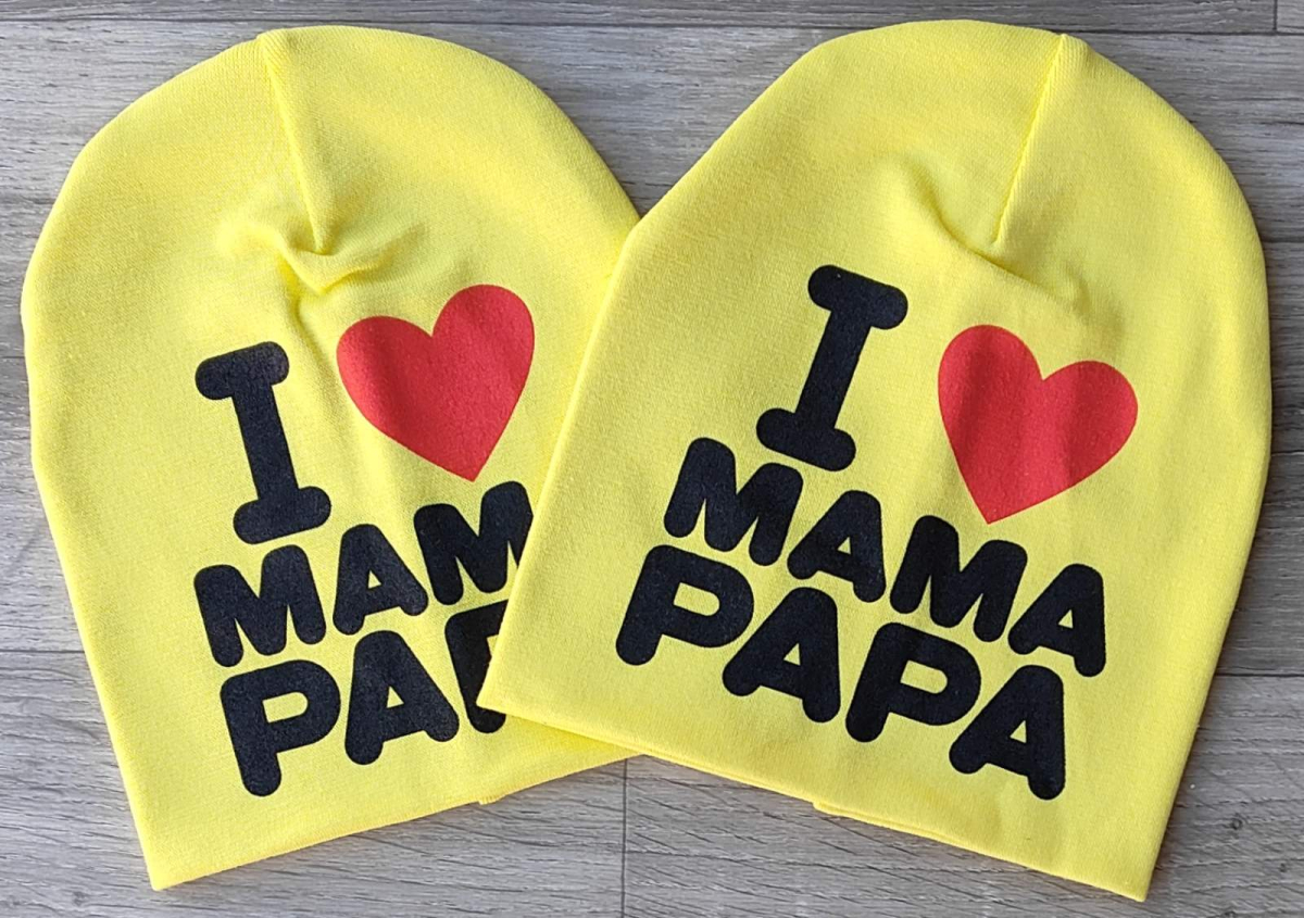 Шапочки "Я❤️Мама,Папа" жовтий, дівчинка 1-2 роки оптом уп. - 5 шт.