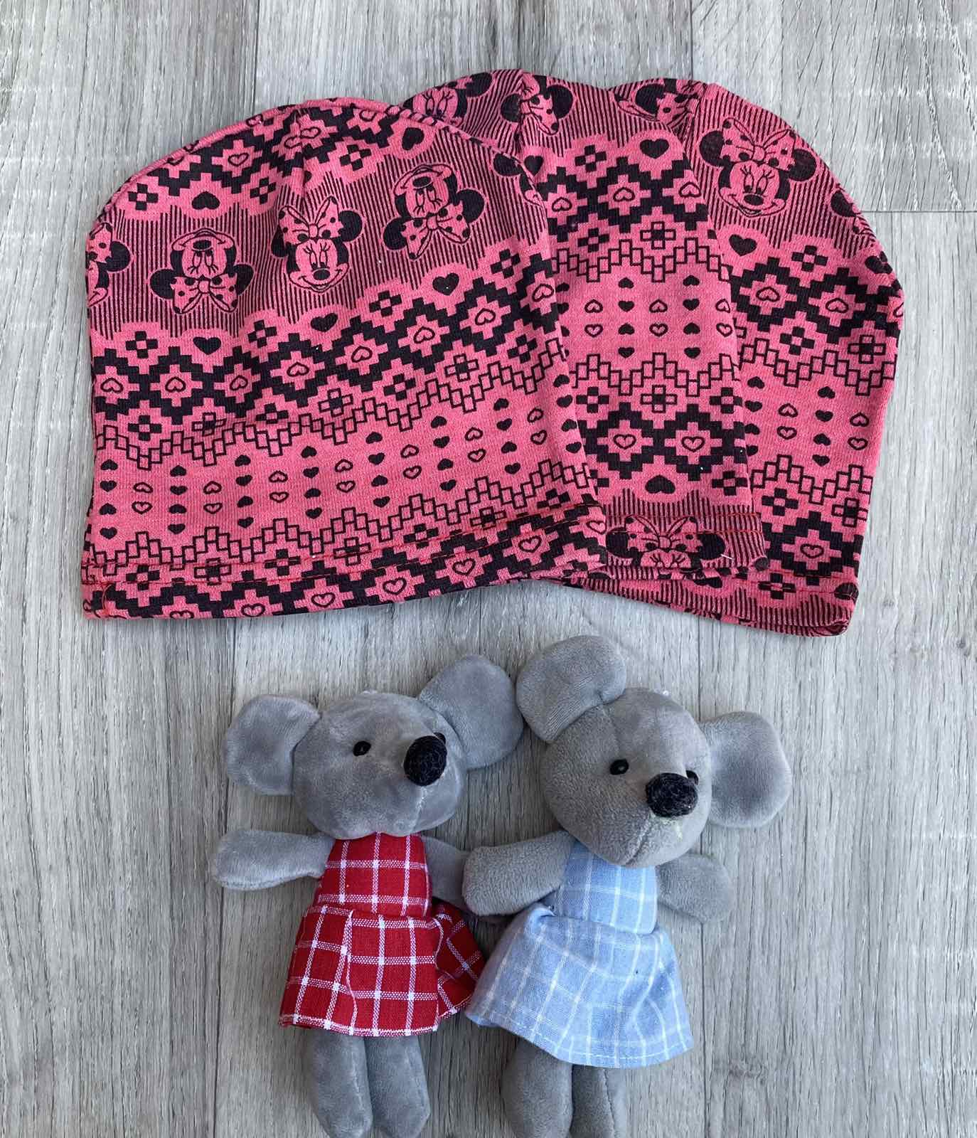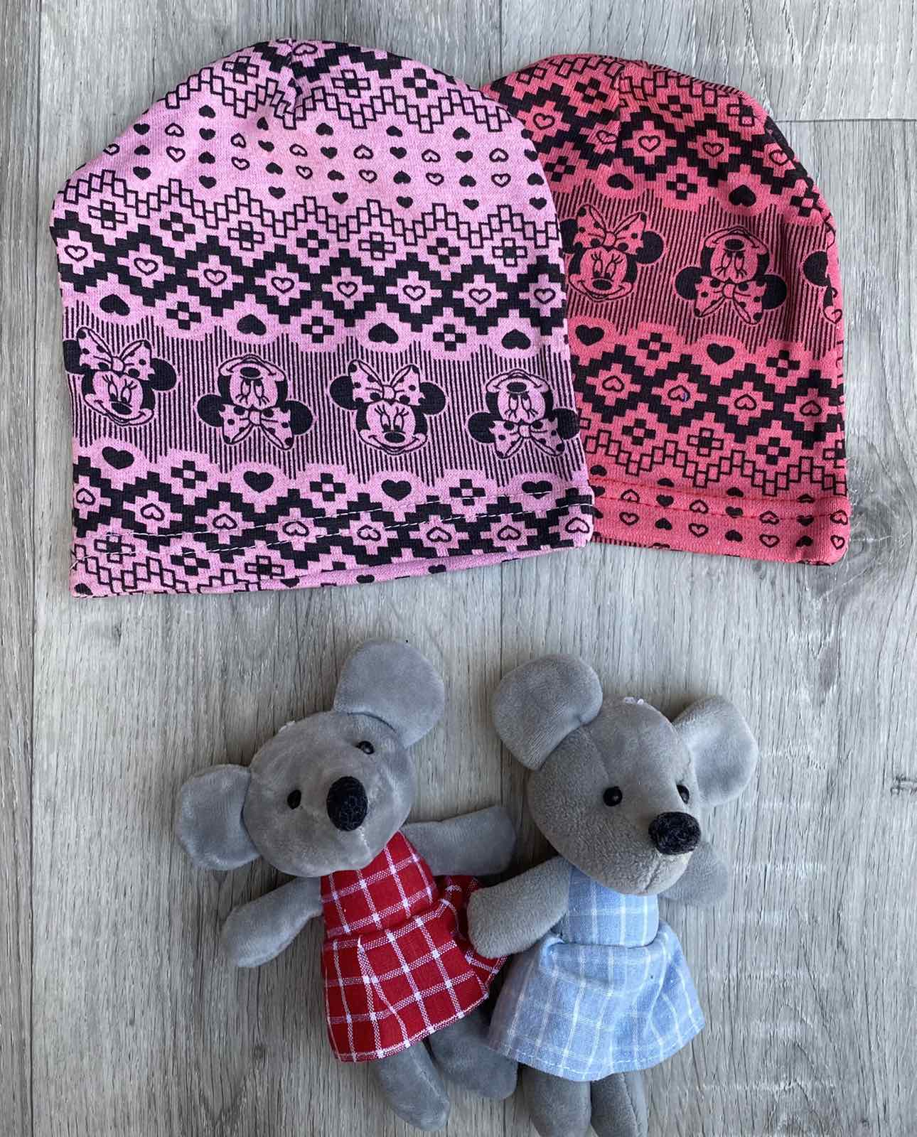Шапочки " Мики" розовые девочка 2-3 года оптом уп. - 10 шт.