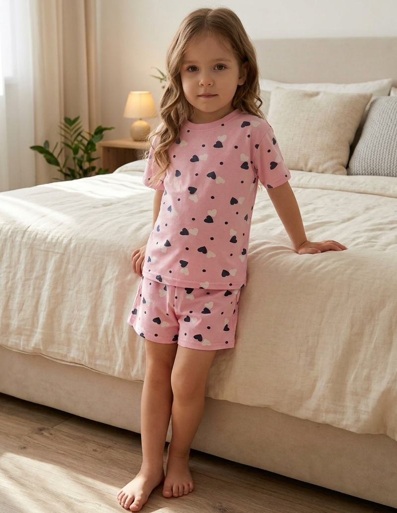 Спальный комплект «Сердце» розовый, девочка 5-6-7-8 лет оптом уп. - 4 шт.