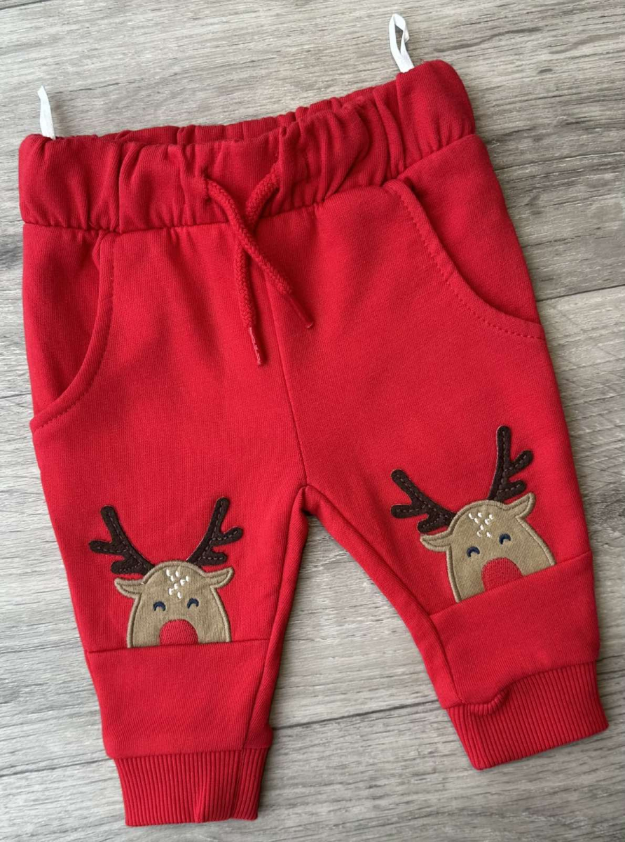 Штаны "Олененок" красный, унисекс 3-6-9 месяца оптом уп. - 5 шт.