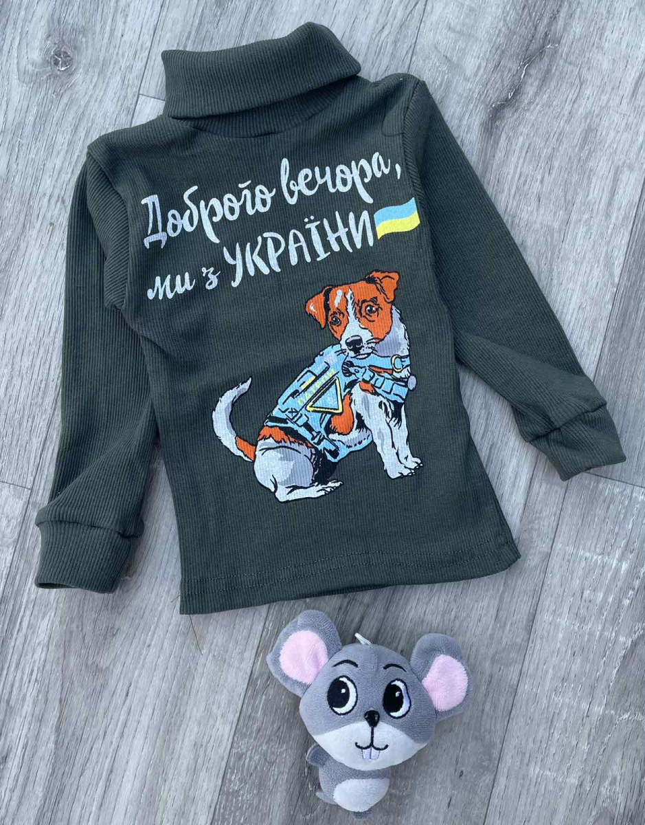 Водолазка "Доброго вечора ми з України" хаки, мальчик 1-2-3-4-5 лет оптом уп. - 5 шт.