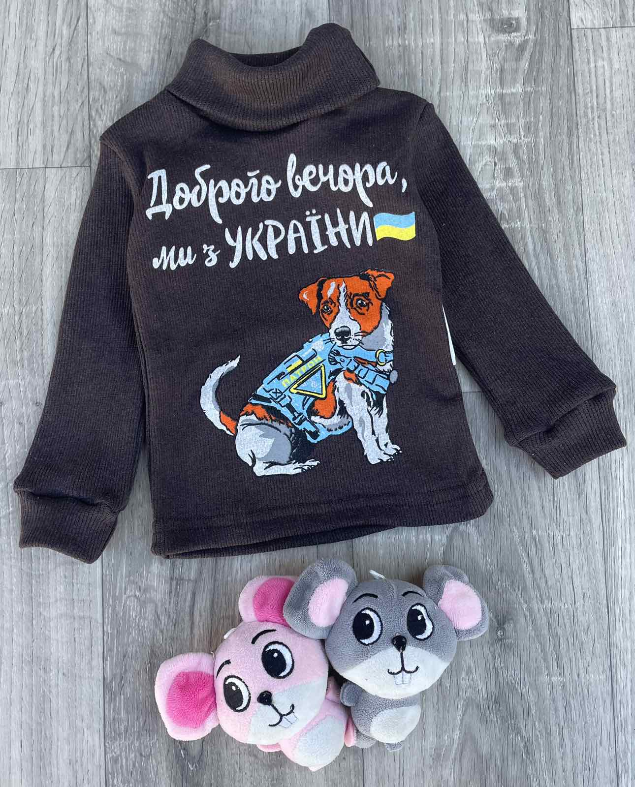 Водолазка "Доброго вечора ми з України" коричневая, мальчики 1-2-3-4-5 лет оптом уп. - 5 шт.