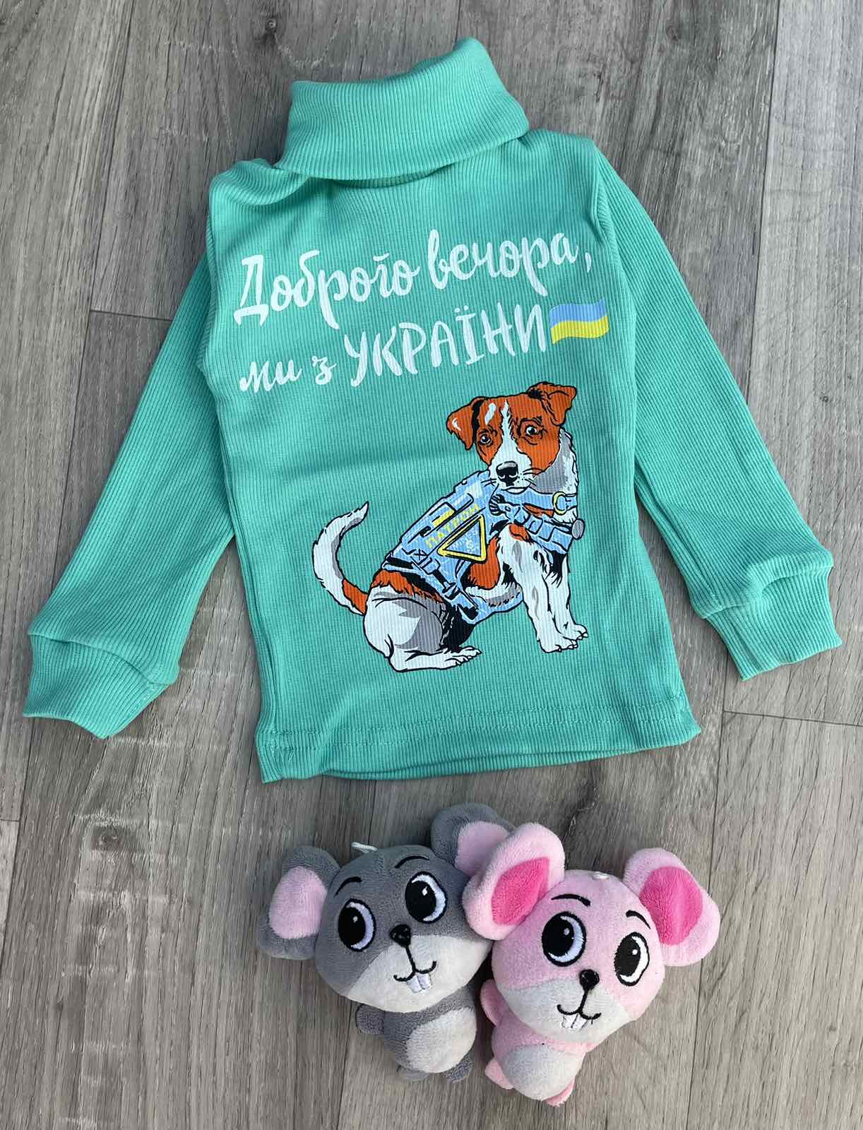 Водолазка "Доброго вечора ми з України" мятная, мальчик 1-2-3-4-5 лет оптом уп. - 5 шт.
