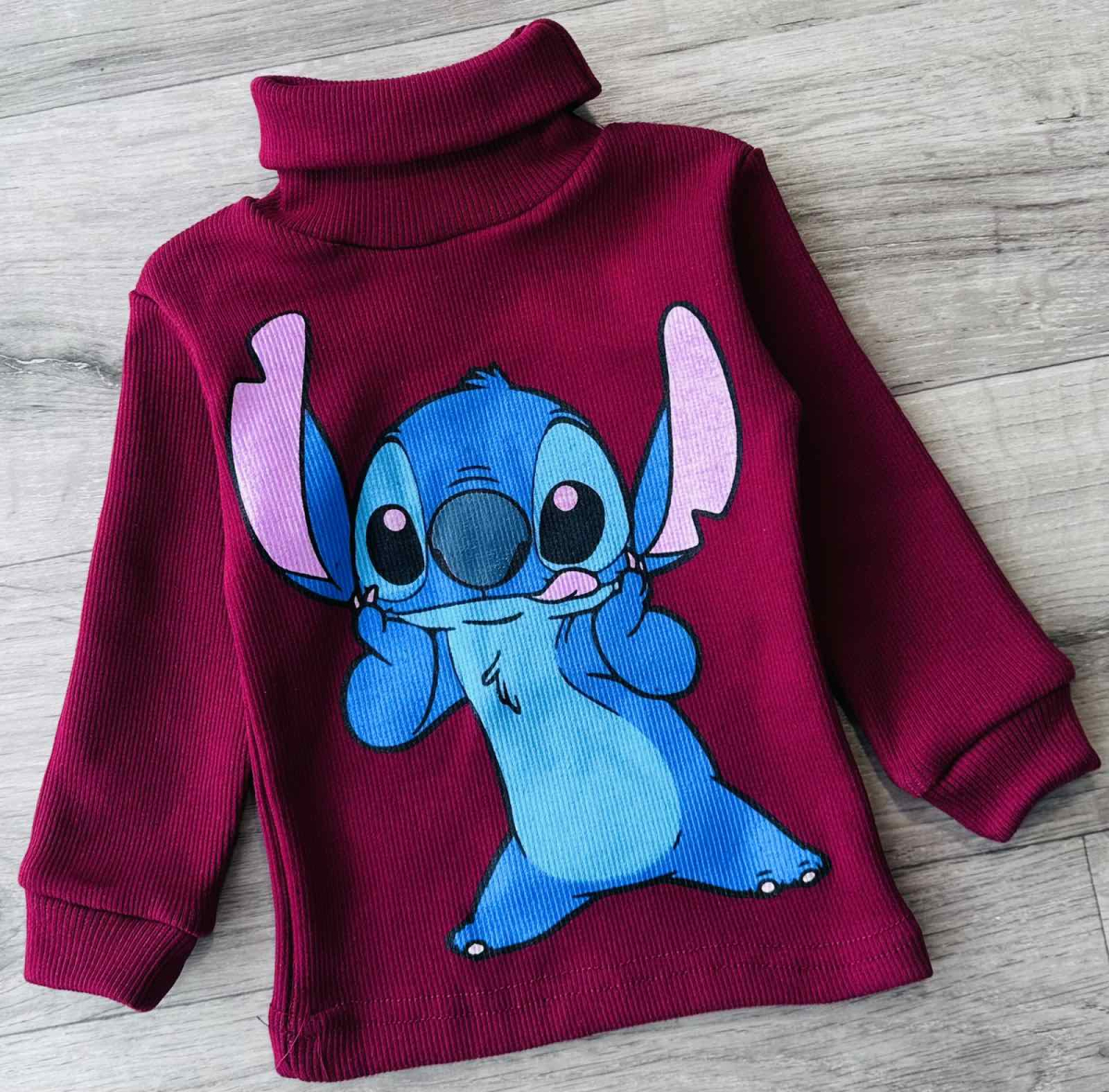 Водолазка "Стич" бордовый, девочка 1-3-5-7-9 лет оптом уп. - 5 шт.