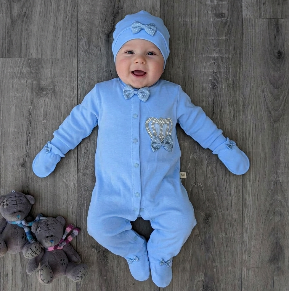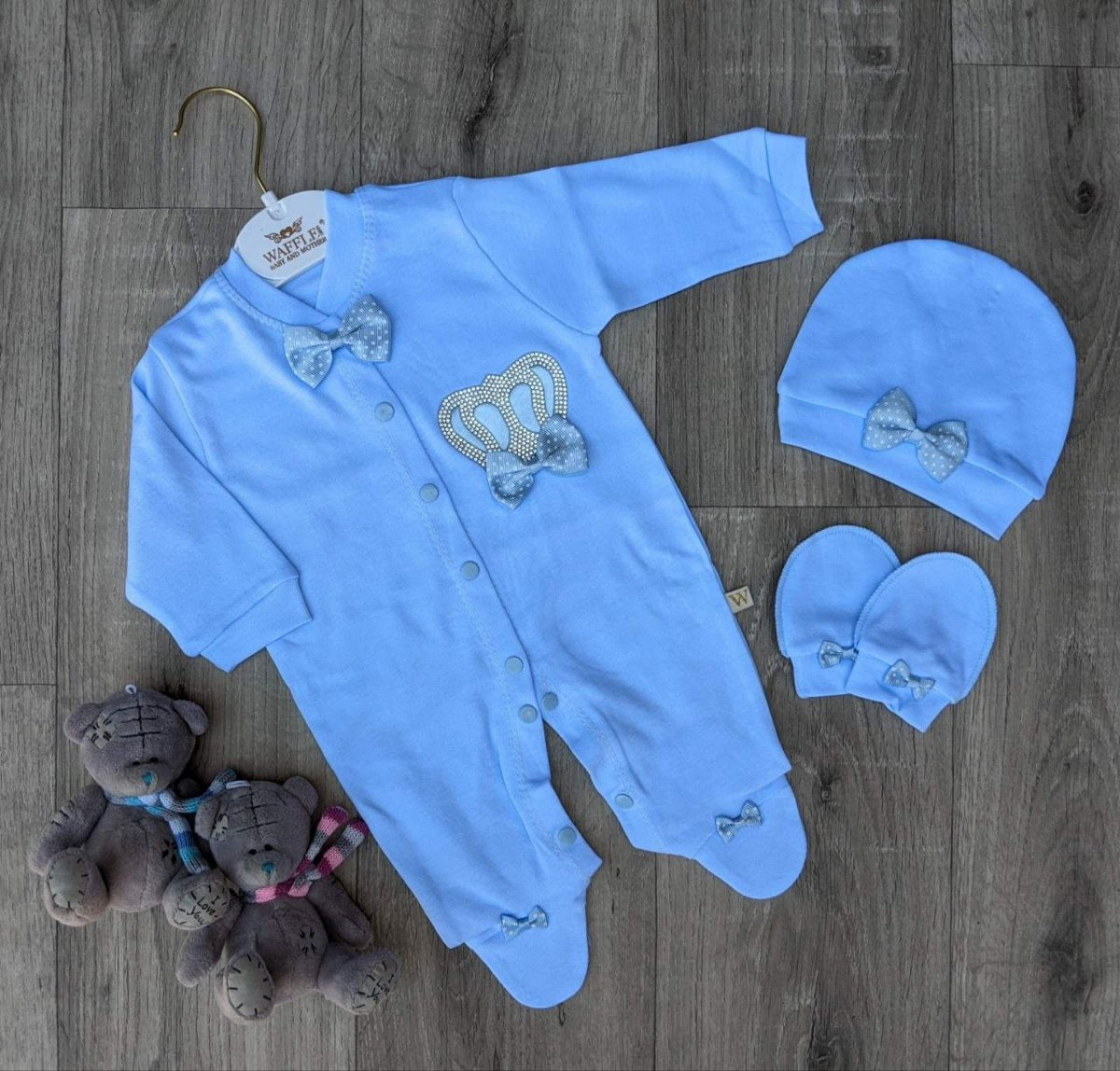 Человечек Waffle "Корона" голубой , мальчик 0-3-6 месяцев оптом уп. - 3 шт.