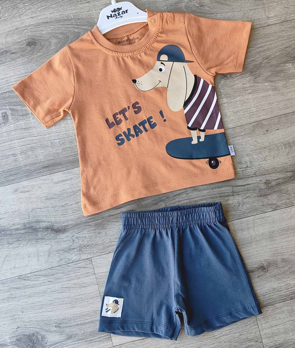 Костюм Nazar Baby "Let's Skate!" коричневый(кирпичный), мальчик 9-12-18-24 месяцев оптом уп. - 4 шт.
