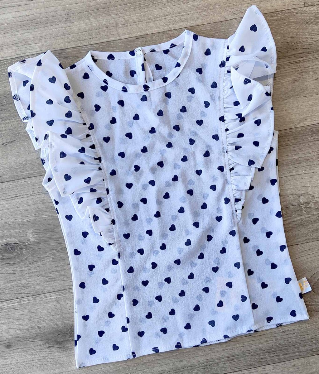 Блуза "Сердечки 2" белая, девочка 7-8-9-10-11 лет оптом уп. - 5 шт.
