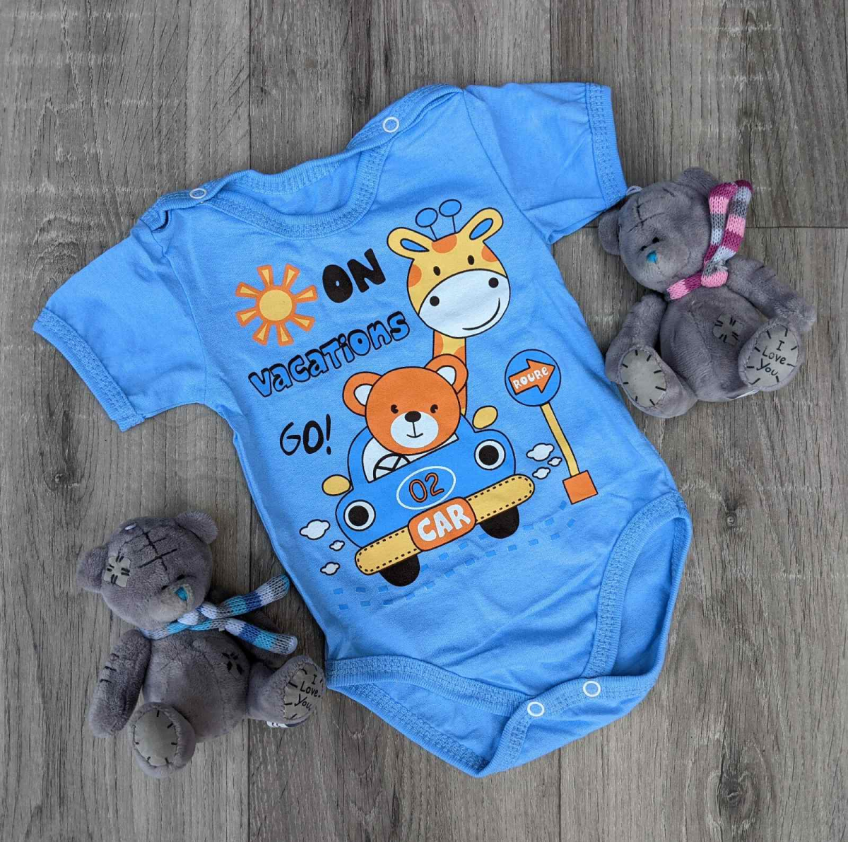 Боді "Car", блакитний, хлопчик 3-6-9 місяців оптом уп. - 3 шт.