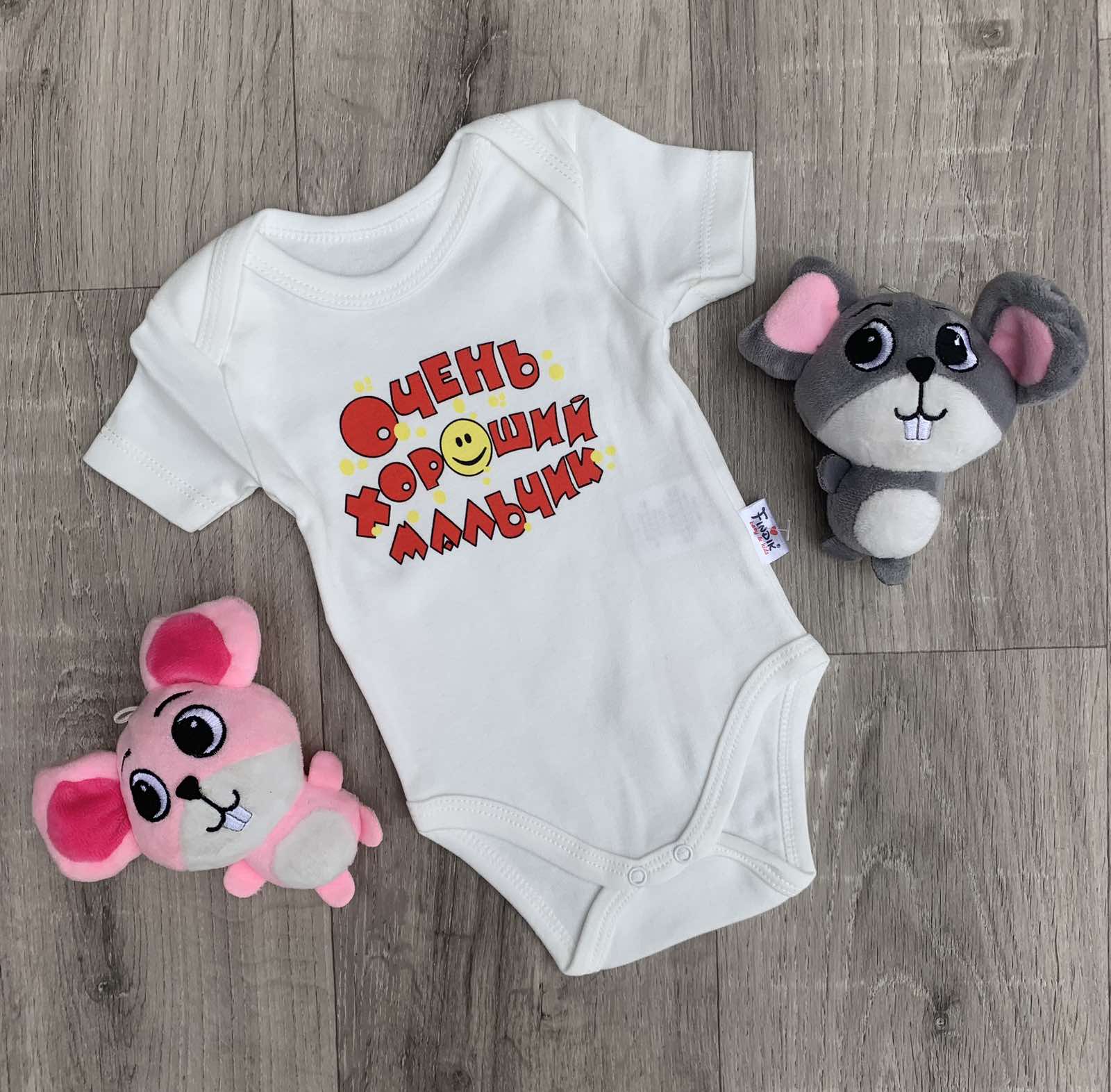 Боди Findik "Очень хороший мальчик", молочный, мальчик 3-6-9-12-18 месяцев оптом уп. - 5 шт.