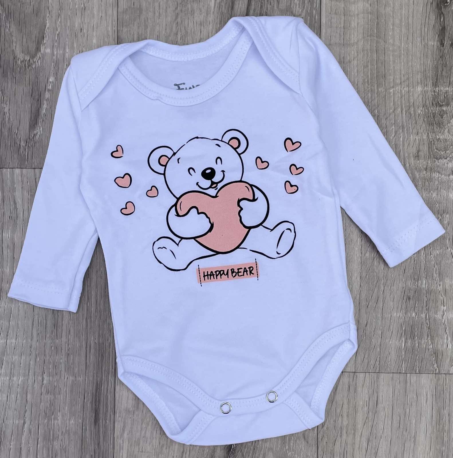 Боді Findik «Happy Bear» білий, дівчинка 3-6-9-12-18 місяців оптом уп. - 5 шт.