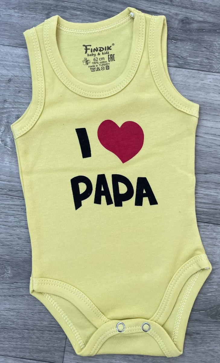 Боді Findik «I ❤️ Papa» жовтий, унісекс 3-6-9-12-18 місяців оптом уп. - 5 шт.
