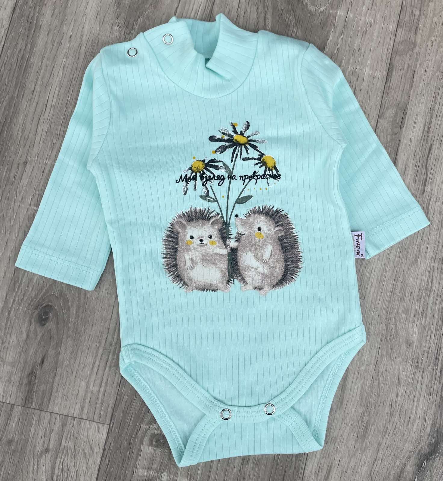 Боді Findik «Їжачки» бірюзовий, дівчинка 3-6-9-12-18 місяців оптом уп. - 5 шт.