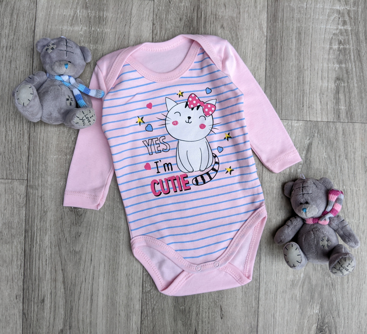 Боди Findik "Кошечка", розовый, девочка 3-6-9-12-18 месяцев оптом уп. - 5 шт.