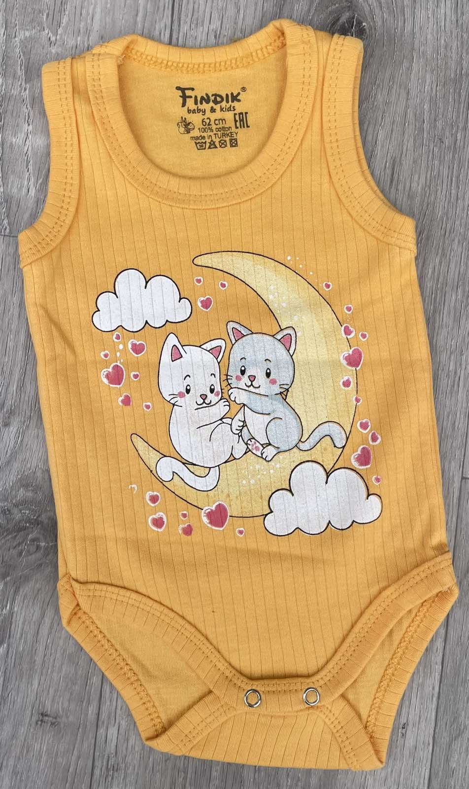 Боді Findik «Кошенята» жовтий, унісекс 3-6-9-12-18 місяців оптом уп. - 5 шт.