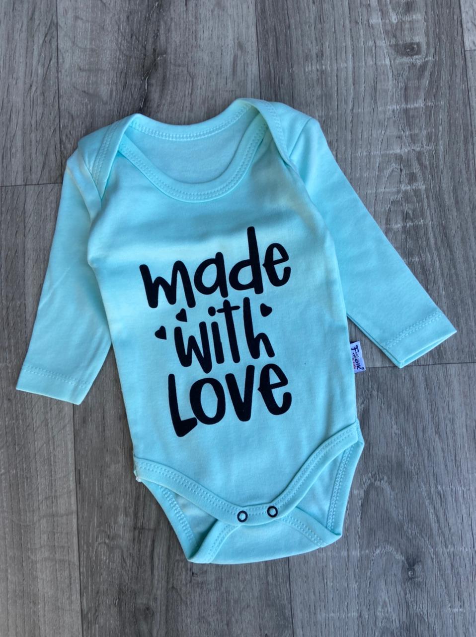 Боді Findik "Made with love", бірюзовий, унісекс 3-6-9-12-18 місяців оптом уп. - 5 шт.