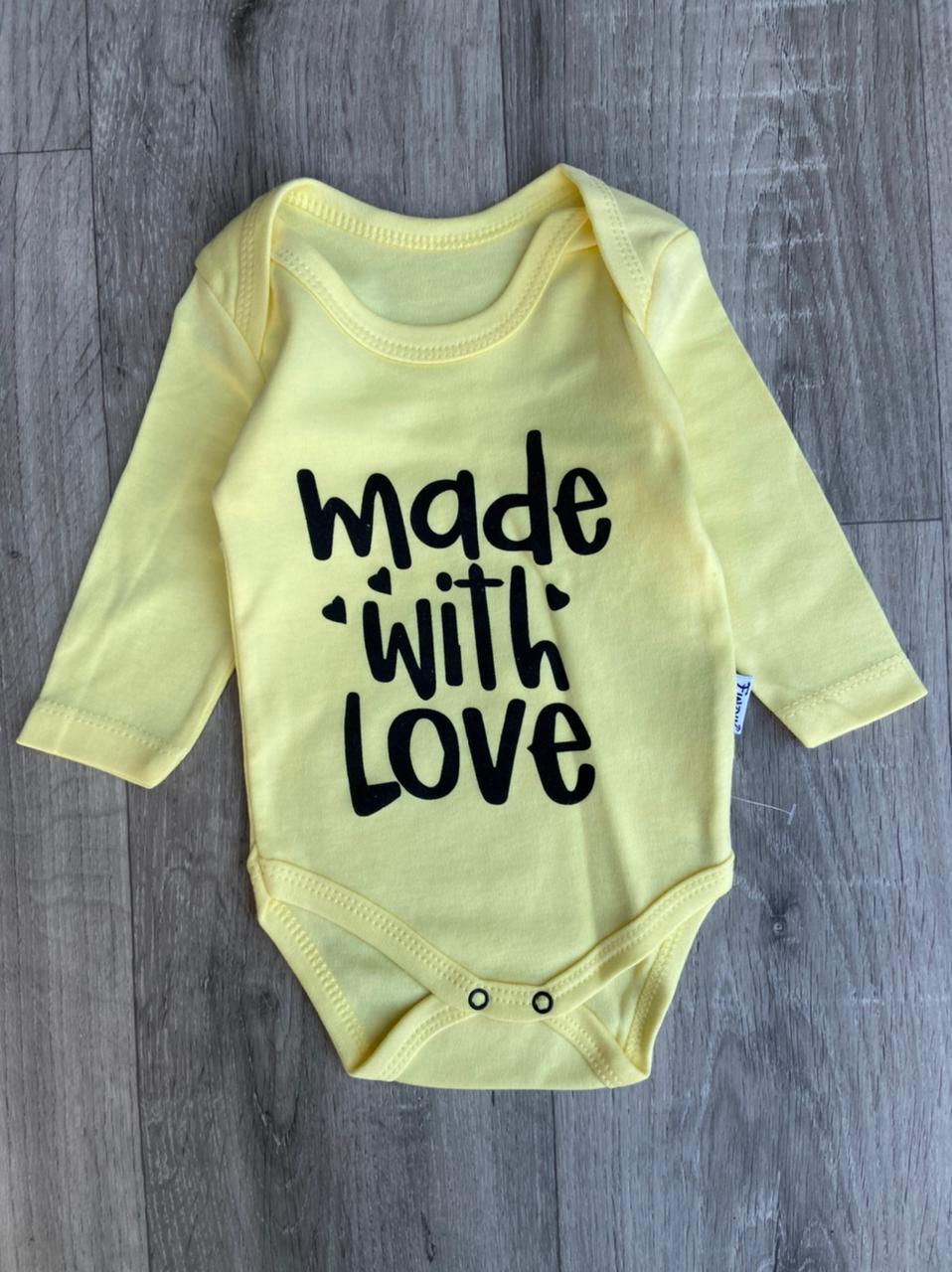 Боді Findik "Made with love", жовтий, унісекс 3-6-9-12-18 місяців оптом уп. - 5 шт.